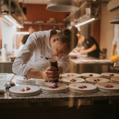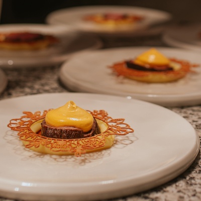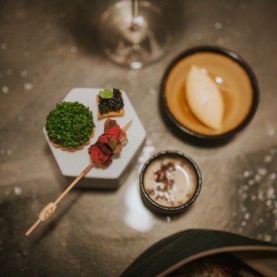 Kuchnia to jednak nie tylko Szef Budzik. Od lat w komponowaniu menu i przygotowywaniu dań wspiera go swoją wiedzą i umiejętnościami Sous Chef Alicja Marcinkiewicz i Diego Pereira. Menu degustacyjne to wyjątkowa podróż przygotowana z ogromną dbałością o detal przy wykorzystaniu wszelkich technik kulinarnych, perfekcyjna technicznie i zaskakująca w smaku, ukazująca w pełnym wymiarze umiejętności i talent Szefa Kuchni. Kolacja degustacyjna poprzedzona jest amuse bouche, czyli niewielką przekąską od Szefa Kuchni a zakończona selekcją małych słodkości – petit fours przygotowanych przez naszego cukiernika.